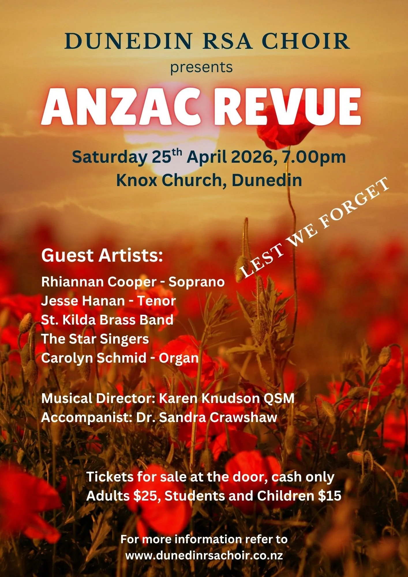 ANZAC Revue in Knox Church, Saturday evening 25th April 2026, 7pm.